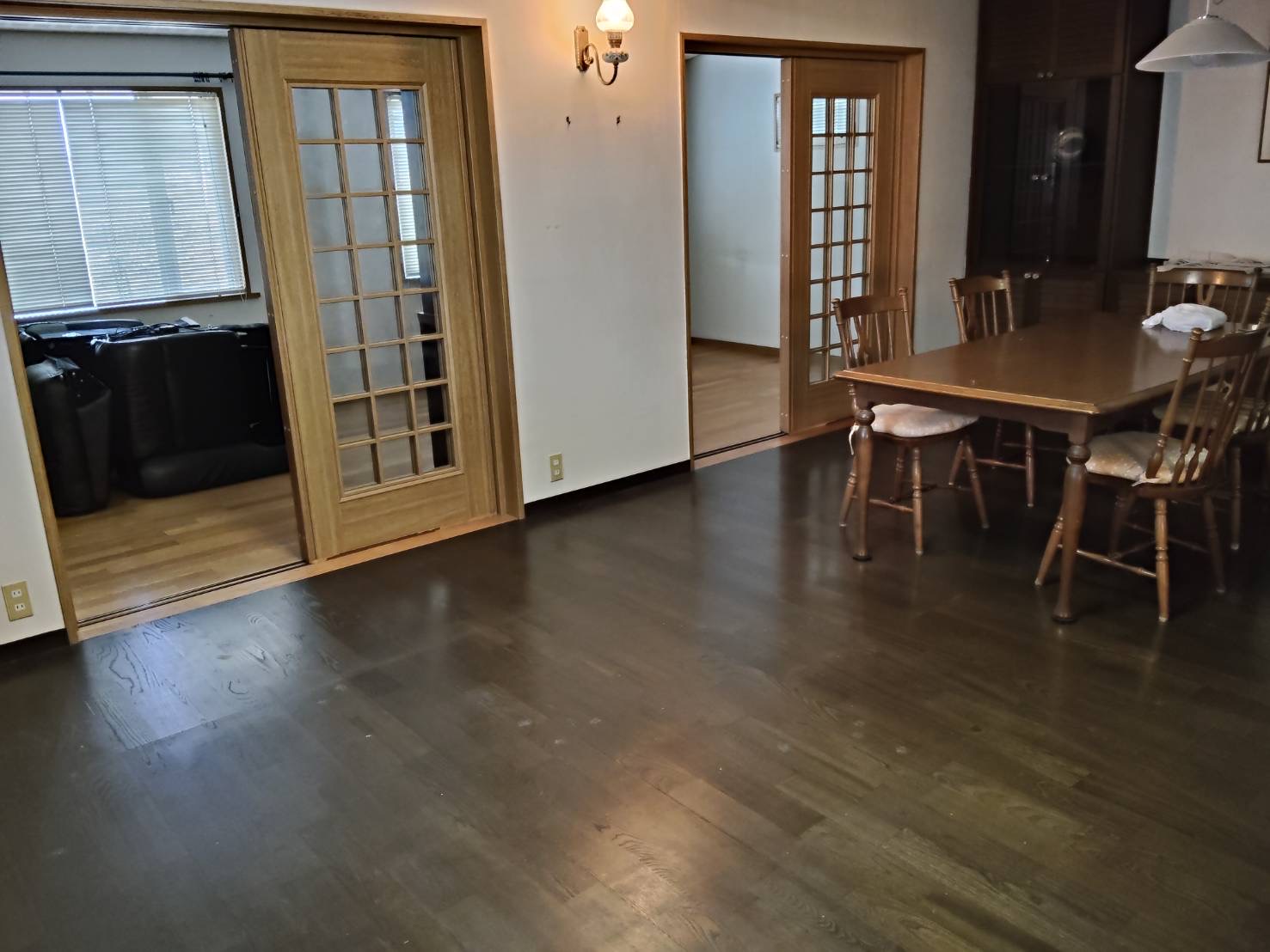 汚れた壁をブルーの壁紙に貼替え、古くなったカーペット敷の床を剥がしてフローリングに張替えてモダンな部屋になりました。